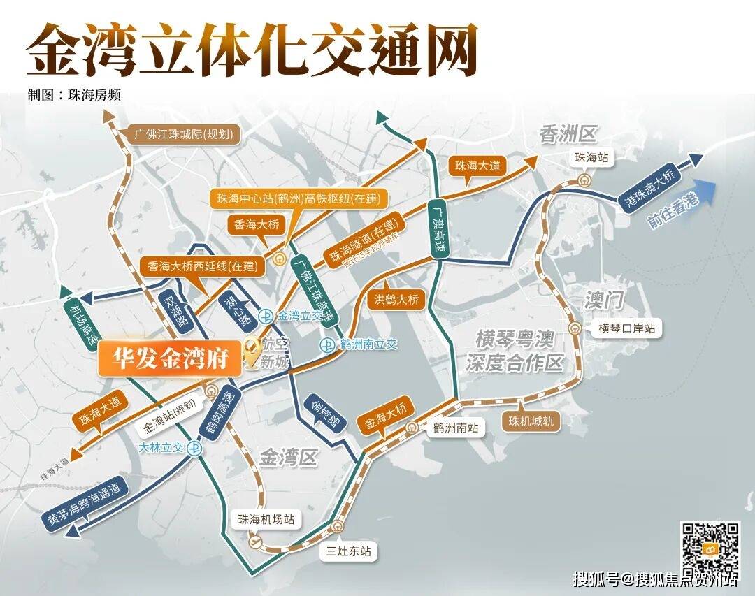 而金湾,处于珠海几何中心,凭借“一心、双港、四铁、五横六纵”全维立体交通网,一举成为“湾区西翼枢纽之城”,强势赋能板块发展!