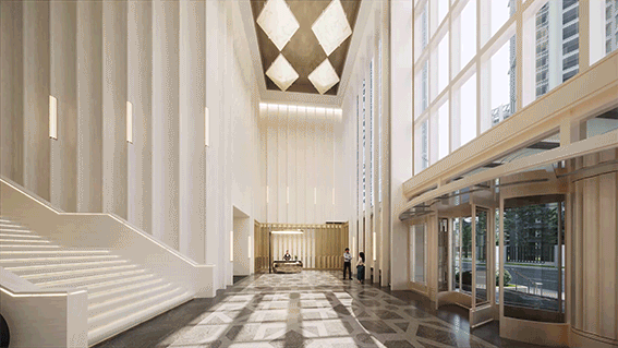 一间近似美术馆的艺术会所,是社区艺术性的集中体现。对于归家大堂的艺术性探索,中興傲舍从一开始便不限于将空间简单打造为盛放艺术的容器,更包含着空间与艺术相结合的创新实践: