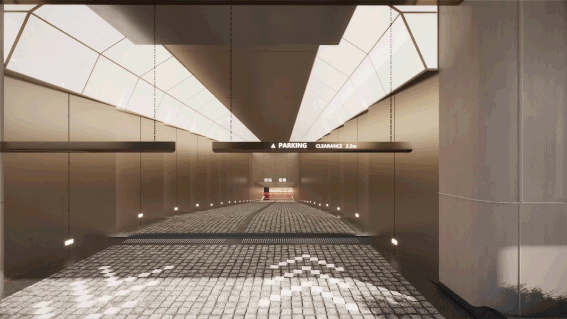 建立在混合业态的基础上,住宅用户归家,可以通过专属独立大堂的艺术阶梯或者周边电梯,垂直抵达三层/四层归家花园道,实现情绪归家。在花园内可以通过风雨连廊实现无风雨归家。