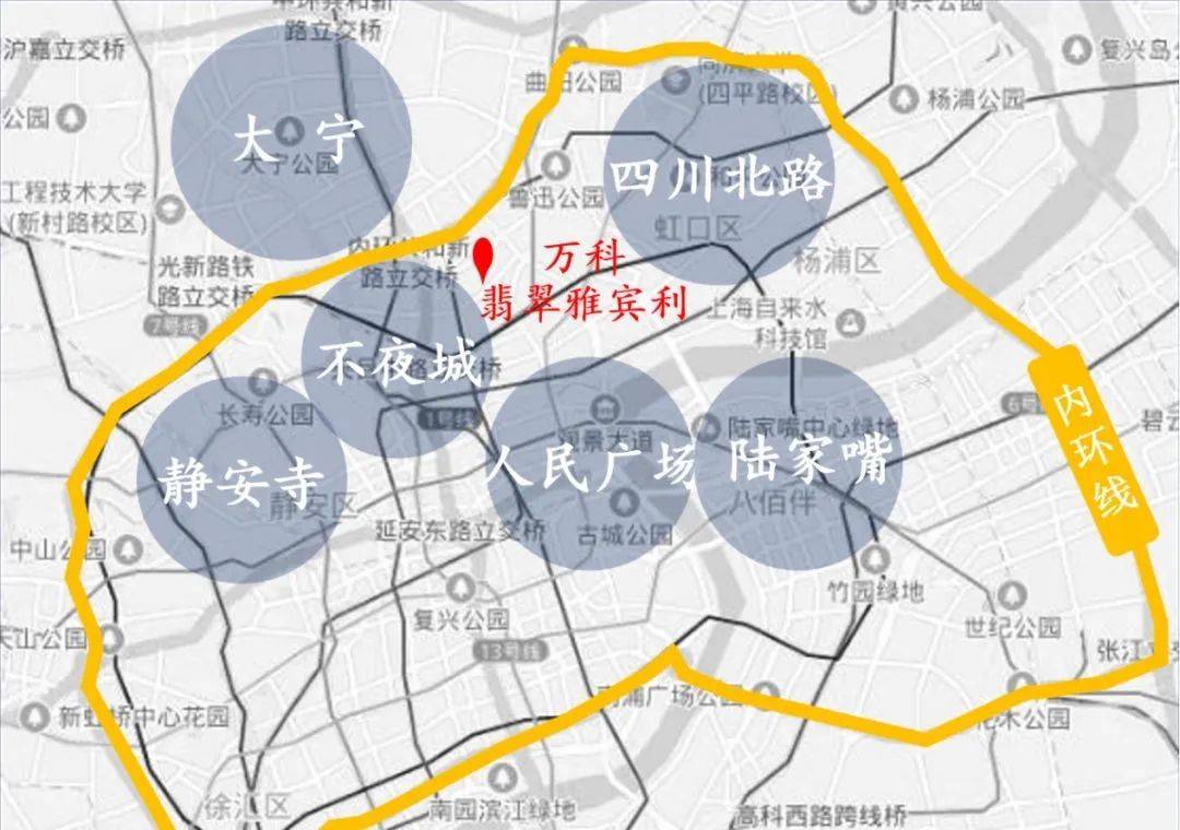 周边商业、教育及医疗等各方面配套都较为完善。1km范围内有虹口龙之梦及大悦城两大购物中心。
