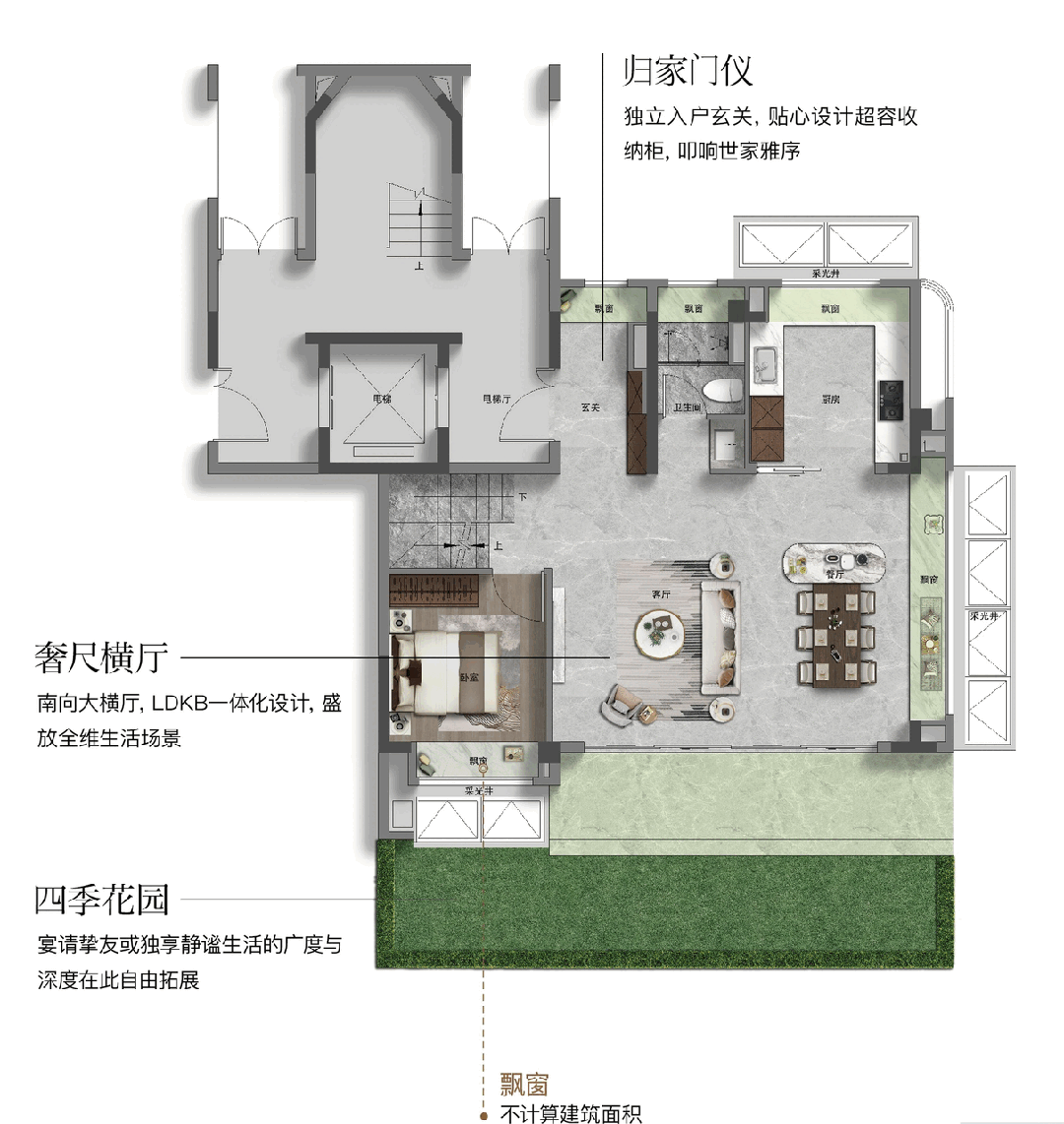 对于追求一步到位的改善家庭,约181㎡的下叠户型无疑是最具吸引力的选择。它以其恢弘的尺度、完备的功能和极高的可塑性,定义了何为传承级的墅质生活。