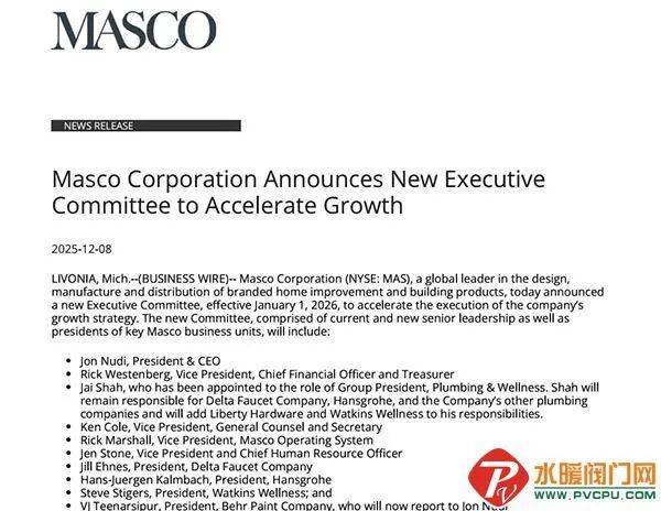 马斯科、唯宝、乐家、Norcros、Franke...国外巨头高层人事变动