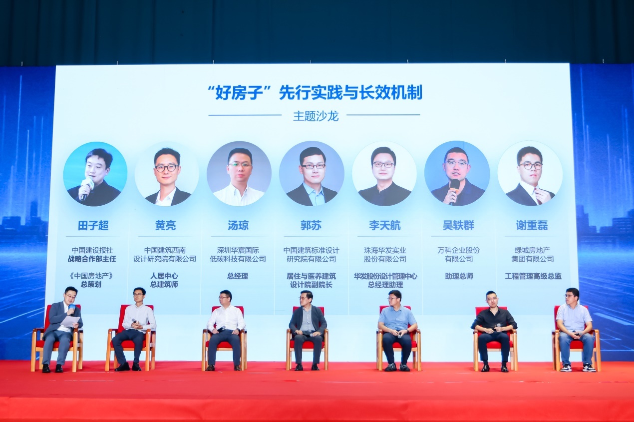 “沙龙座谈”环节由中国建设报社战略合作部主任、《中国房地产》总策划田子超主持。中国建筑西南设计研究院有限公司人居中心总建筑师黄亮、深圳华宸国际低碳科技有限公司总经理汤琼、标准院居住与医养建筑设计院副院长郭苏、珠海华发实业股份有限公司设计管理中心总经理助理李天航、万科企业股份有限公司助理总师吴轶群、绿城房地产集团有限公司工程管理高级总监谢重磊围绕建成什么样“好房子”、“好房子”怎么建等话题各抒己见,从政策支持、技术创新、企业实践、标准完善等多个维度展开深入交流,共同探讨如何建立健全“好房子”建设的长效机制。